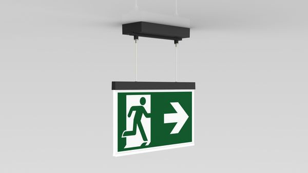 Moderne Zink-Druckguss Rettungszeichenleuchte mit Seilabhängung zur Deckenaufbaumontage. Die Kennzeichnung der Rettungs- und Fluchtwege kann wahlweise ein- oder beidseitig erfolgen. Sie gehört zur Leuchtenfamile der A-Serie, die Lösungen für jede Montageart bereithält und für ihr einheitliches, geradliniges Design mit dem German Design Award ausgezeichnet wurde. Steuerung und Überwachung über zentrales Stromversorgungssystem. Zwei gewünschte Piktogramme (Pfeil rechts, links, oben, unten oder weiß) sind standardmäßig im Lieferumfang enthalten.