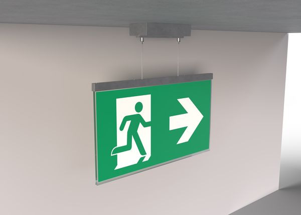 Moderne Zink-Druckguss Rettungszeichenleuchte mit Seilabhängung zur Deckenaufbaumontage. Die Kennzeichnung der Rettungs- und Fluchtwege kann wahlweise ein- oder beidseitig erfolgen. Sie gehört zur Leuchtenfamile der A-Serie, die Lösungen für jede Montageart bereithält und für ihr einheitliches, geradliniges Design mit dem German Design Award ausgezeichnet wurde. Kabelllose zentrale Steuerung und Überwachung für große Installationen von bis zu 50.000 Leuchten mit Wireless Professional. Zwei gewünschte Piktogramme (Pfeil rechts, links, oben, unten oder weiß) sind standardmäßig im Lieferumfang enthalten.