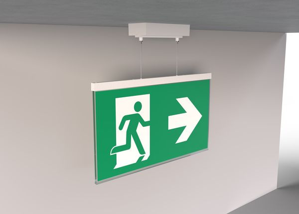 Moderne Zink-Druckguss Rettungszeichenleuchte mit Seilabhängung zur Deckenaufbaumontage. Die Kennzeichnung der Rettungs- und Fluchtwege kann wahlweise ein- oder beidseitig erfolgen. Sie gehört zur Leuchtenfamile der A-Serie, die Lösungen für jede Montageart bereithält und für ihr einheitliches, geradliniges Design mit dem German Design Award ausgezeichnet wurde. Kabelllose zentrale Steuerung und Überwachung für große Installationen von bis zu 50.000 Leuchten mit Wireless Professional. Zwei gewünschte Piktogramme (Pfeil rechts, links, oben, unten oder weiß) sind standardmäßig im Lieferumfang enthalten.