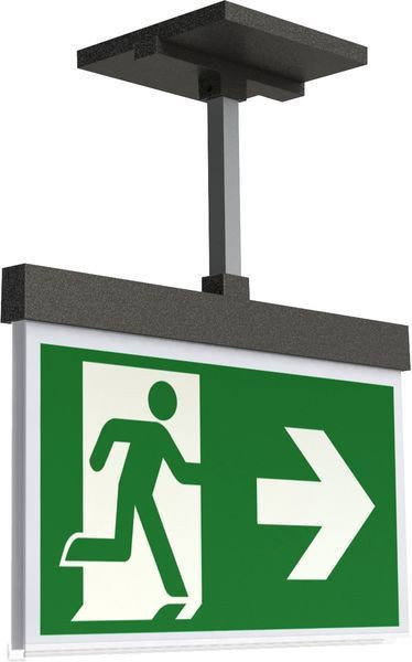 Moderne Zink-Druckguss Rettungszeichenleuchte mit Pendel zur Deckeneinbaumontage. Mit einem Einbaudurchmesser von 68 mm lässt sich diese Leuchte leicht in viele Umgebungen integrieren. Die Kennzeichnung der Rettungs- und Fluchtwege kann wahlweise ein- oder beidseitig erfolgen. Sie gehört zur Leuchtenfamile der A-Serie, die Lösungen für jede Montageart bereithält und für ihr einheitliches, geradliniges Design mit dem German Design Award ausgezeichnet wurde.Steuerung und Überwachung über zentrales Stromversorgungssystem. Planungssicherheit wird durch logisch vorgegebene aufgedruckte Piktogramme geboten. Die Piktogramme entsprechend DIN ISO 7010 (Pfeil rechts, links und unten) sind standardmäßig im Lieferumfang enthalten. Auf Anfrage kann die Beschriftung auch nach Kundenvorgabe erfolgen.