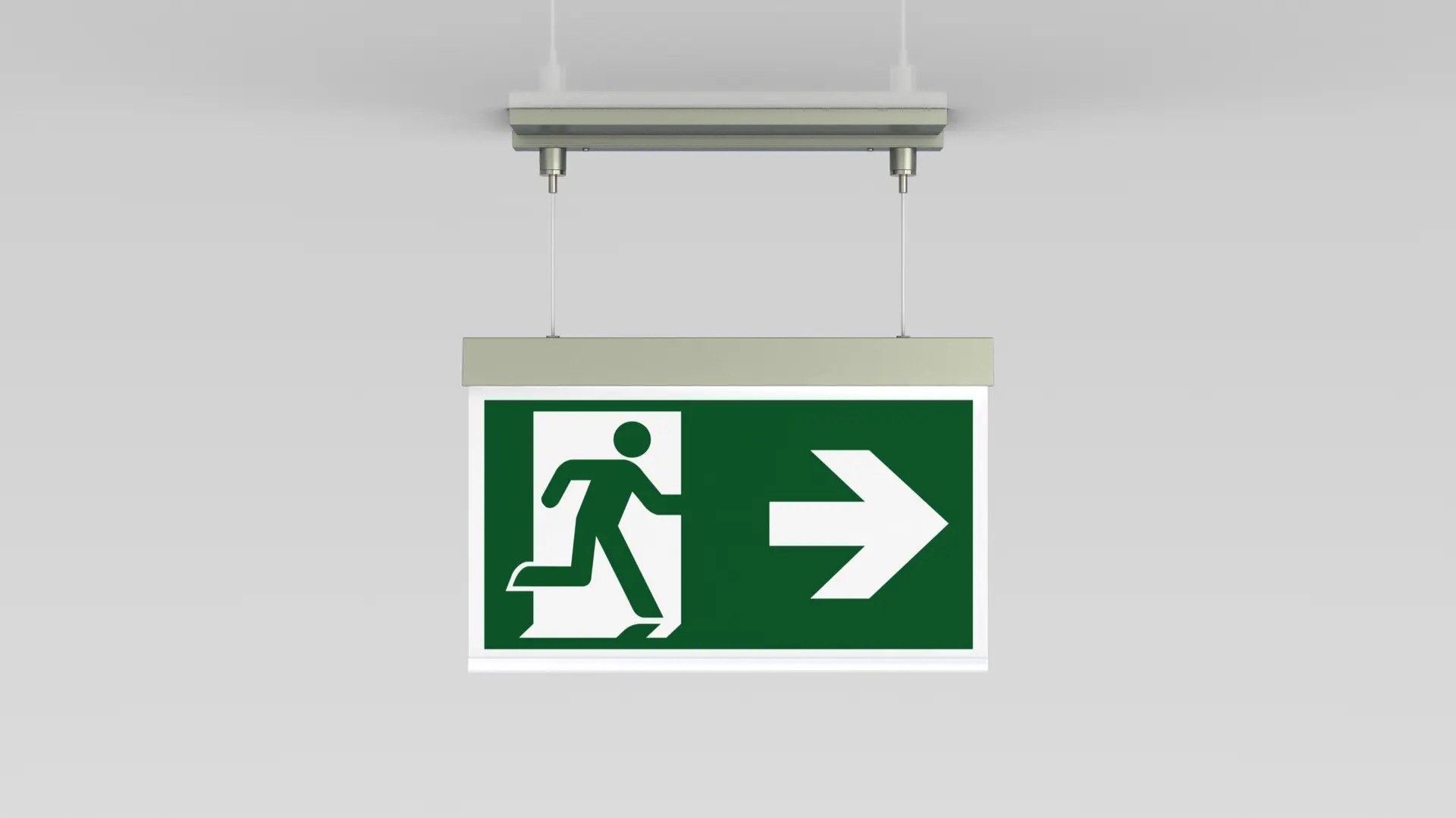 Moderne Zink-Druckguss Rettungszeichenleuchte mit Seilabhängung zur Deckeneinbaumontage. Die Kennzeichnung der Rettungs- und Fluchtwege kann wahlweise ein- oder beidseitig erfolgen. Sie gehört zur Leuchtenfamile der A-Serie, die Lösungen für jede Montageart bereithält und für ihr einheitliches, geradliniges Design mit dem German Design Award ausgezeichnet wurde. Steuerung und Überwachung über zentrales 24-Volt-Low Power System. Planungssicherheit wird durch logisch vorgegebene aufgedruckte Piktogramme geboten. Die Piktogramme entsprechend DIN ISO 7010 (Pfeil rechts, links und unten) sind standardmäßig im Lieferumfang enthalten. Auf Anfrage kann die Beschriftung auch nach Kundenvorgabe erfolgen.