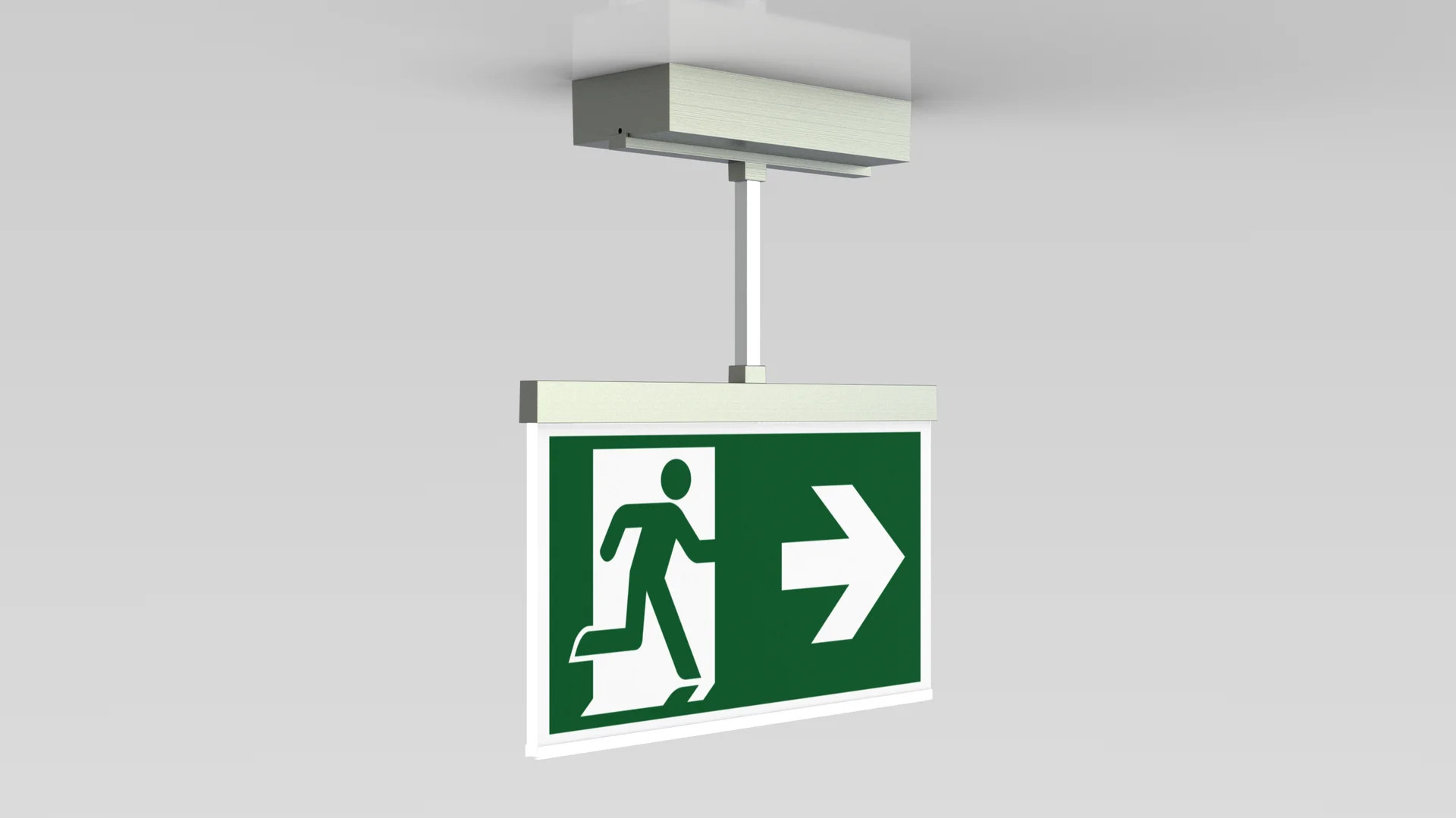 Moderne Zink-Druckguss Rettungszeichenleuchte mit Pendel zur Deckenaufbaumontage. Die Kennzeichnung der Rettungs- und Fluchtwege kann wahlweise ein- oder beidseitig erfolgen. Sie gehört zur Leuchtenfamile der A-Serie, die Lösungen für jede Montageart bereithält und für ihr einheitliches, geradliniges Design mit dem German Design Award ausgezeichnet wurde.Steuerung und Überwachung über zentrales Stromversorgungssystem. Planungssicherheit wird durch logisch vorgegebene aufgedruckte Piktogramme geboten. Die Piktogramme entsprechend DIN ISO 7010 (Pfeil rechts, links und unten) sind standardmäßig im Lieferumfang enthalten. Auf Anfrage kann die Beschriftung auch nach Kundenvorgabe erfolgen.
