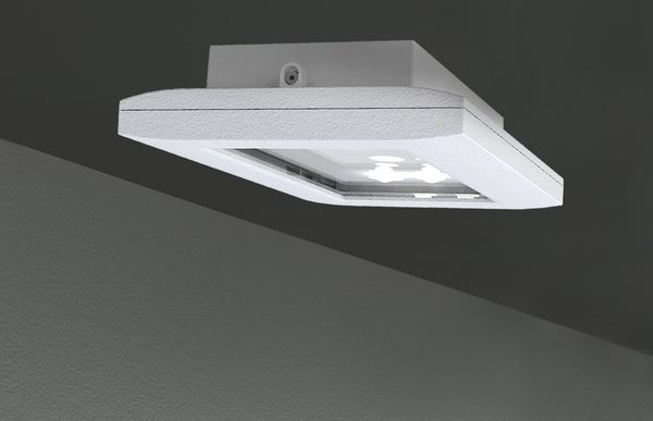 Robuste Zink-Druckguss Sicherheitsleuchte zum Deckenaufbau, zur Ausleuchtung der Flucht- und Rettungswege. Steuerung und Überwachung über zentrales Stromversorgungssystem.