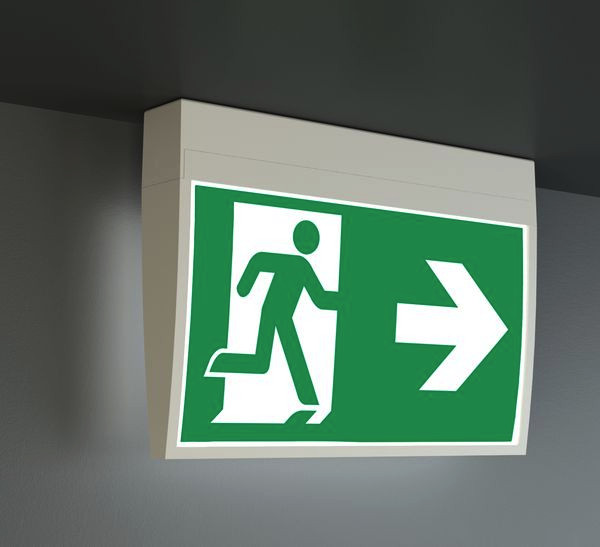 Schlanke konvexe Kunststoffleuchte für Universalmontage zur Kennzeichnung der Flucht- und Rettungswege für ein- oder zweiseitige Beschriftung gem. DIN EN 60598-1, DIN EN 60598-2-22 und DIN EN 1838. LED-Technik mit weißen High-Power SMD-LED.Gehäusefarbe in Schwarz RAL 9005