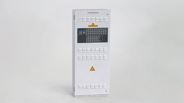 Die Systeme der miniControl XL plus sind batteriegestützte zentrale Stromversorgungssysteme nach DIN EN 50171, die zur Versorgung und Überwachung von Rettungs- und Sicherheitsleuchten konzipiert sind. Bis zu 32 Stk. Stromkreise pro System ermöglichen die Versorgung und zusatzleitungslose Überwachung von bis zu 640 Leuchten in Mischbetriebstechnik.Eine Anzeige- und Bedieneinheit, bestehend aus LC-Display, Tastenfeld und Status LEDs, gibt Information über den aktuellen Systemzustand und ermöglicht Konfigurationen direkt am System.Optional ist ein Touchdisplay lieferbar.Das Prüfbuch erfasst und speichert Daten über einen Zeitraum >5 Jahre. Über ein integriertes (patentiertes) Web-Interface lassen sich alle Systeme visualisieren und konfigurieren.Die Vernetzung von weiteren Systemen bietet die Möglichkeit zur Erweiterung des Systems sowie der Anpassung an individuelle Anforderungen, wie z.B. Installationsaufwand.miniControl XL plusmax. 32 Stk. Stromkreise, 1300 W/1h, max. 640 LeuchtenDie miniControl XL plus ist ein zentrales Stromversorgungssystem nach DIN EN 50171 bis maximal 1300 W/1h und servicefreundlicher modularer Einschubtechnik.