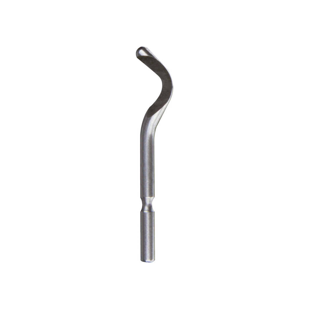 Klinge E 300, HSS-Klinge mit der Schneidkante von B 30, nur mit langem Schaft. Für gleichzeitiges Entgraten innerer und äußerer Bohrungen bis 4,0 mm Materialstärke.