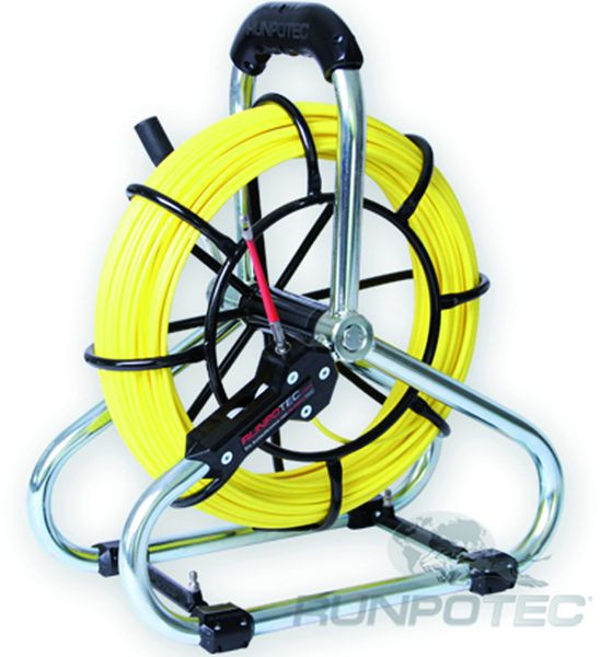 Lieferumfang: 1 x GF4.5 Glasfaserstab Ø 4,5 mm Standard-Set, Länge: 80 m, Edelstahl-Endhülsen beidseitig (Anfang/Ende), 1 x Stahlhaspel Ø 330 mm inkl. Doppelauslaufsystem, 1 x RG7 RUNPOGLEITER mit Frontgewinde