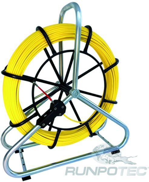 Lieferumfang: 1 x GF6 Glasfaserstab Ø 6 mm - Standard-Set, Länge: 40 m, Edelstahl-Endhülsen beidseitig (Anfang/Ende), 1 x Stahlhaspel Ø 530 mm inkl. Doppelauslaufsystem, 1 x RG7 RUNPOGLEITER mit Frontgewinde
