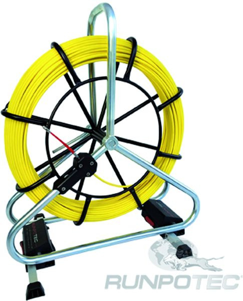 GF6 Glasfaserstab Ø 6 mm - Profi-Set - RUNPOTEC Gewinde RTG Ø 6 mm mit robuster Stahlhaspel Ø 530 mm (KTL/pulverbeschichtet) mit neuem, Doppelauslaufsystem (automatische Auslaufbremse und Schnellauslauf), zusätzliche Feststellbremse, ausziehbare Standfüße und Staufach für das Zubehör. Glasfaserstab Bruchlast 2200 kg, Gesamtbruchlast 320 kg Optimales Einsatzgebiet: für Rohrdurchmesser 40 mm - 100 mm. ANWENDUNGSFILM: Einen kurzen, sehr informativen Anwendungsfilm können Sie durch Scannen des QR-Codes oder auf www.runpotec.com ansehen. Lieferumfang: 1 x GF6 Glasfaserstab Ø 6 mm - Profi-Set, Länge: 60 m, Edelstahl-Endhülsen beidseitig (Anfang/Ende), 1 x Stahlhaspel Ø 530 mm inkl. Doppelauslaufsystem, ausziehbare Standfüße mit Staufach, inkludiertes Zubehör: 1 x RG7 RUNPOGLEITER mit Frontgewinde, 2 x Endhülse, 1 x Verbindungshülse, 1 x Schäkel, 1 x Spezialkleber, 1 x Laufrolle