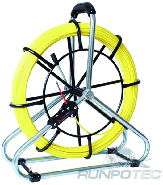 Lieferumfang: 1 x GF6 Glasfaserstab Ø 6 mm - Standard-Set, Länge: 80 m, Edelstahl-Endhülsen beidseitig (Anfang/Ende), 1 x Stahlhaspel Ø 530 mm inkl. Doppelauslaufsystem, 1 x RG7 RUNPOGLEITER mit Frontgewinde