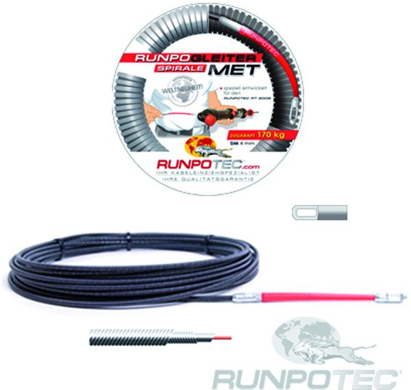 Die MET4 Metallspirale Ø 4 mm ist optimal geeignet in Kombination mit dem RT2008 Einschubsystem. Der RT2008 kann nur voll funktionstüchtig mit der MET4 betrieben werden. Die Metallspirale ist die einzige Spirale die von den Verriegelungsbaken des RT2008 geklemmt und gedreht werden kann. Weiters ermöglicht die RG6 Führungsspitze einen einzigartigen Vorschub bzw. die Überwindung engster Radien. Optional kann die MET4 auch von Hand geschoben werden. (Achtung! die Spirale niemals unter Spannung verwenden!)