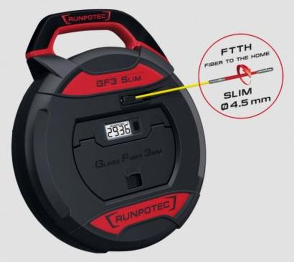 | Kurzbeschreibung | GF3 SLIM Ø 4,5 mm Glasfaserstab Ø 3 mm - Kabeleinziehwerkzeug mit Meterzähler - 20m, Gesamtbruchlast 100kg, Rohr-ID Ø 5-40 mm, für FTTH Installation |