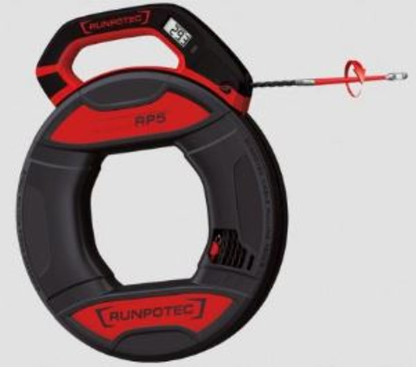 Die RP5 - RUNPOTEC Polyester Ø 5,5 mm ist ein Kabeleinziehwerkzeug inkl. digitalem Meterzähler (zur Längenermittlung von Rohren/Kabeln oder zur Erstellung von Kabellisten). Das dreifach verdrillte Spezialkunststoffband Ø 5,5 mm verfügt über eine noch bessere Schubwirkung als der Glasfaserstab Ø 3 mm und der Reibungswiderstand ist aufgrund seiner punktuellen Auflage nur halb so groß. Die patentierte RG7 - Führungsspitze mit Drallausgleich Ø 5,5 mm (am Bandanfang und -ende verpresst) ermöglicht das Überwinden engster Radien (Biegeradius 15 mm). Die RP5 - RUNPOTEC Polyester Ø 5,5 mm ist in einer baustellentauglichen und robusten Aufbewahrungsbox mit ergonomischem Tragegriff verstaut. Diese ist mit der neuen Rückschub-Sicherung ausgestattet, die das unabsichtliche Rückrutschen des Kabeleinziehbandes verhindert. Die Maßeinheit des Meterzählers kann von Metrisch (m) auf Imperial (ft) umgestellt werden. Die Gesamtbruchlast von unglaublichen 270 kg bezieht sich auf das gesamte Einziehsystem. Arbeits- und zeitaufwendige Reparaturarbeiten entfallen, da dieses Kabeleinziehsystem nahezu bruchfrei ist. Die RP5 ist in den Längen 20 m und 30 m erhältlich. Das RP5 Ersatzband 40 m kann nicht in der Box verstaut werden. Optimales Einsatzgebiet: für Rohre von Ø 16 mm - 40 mm.