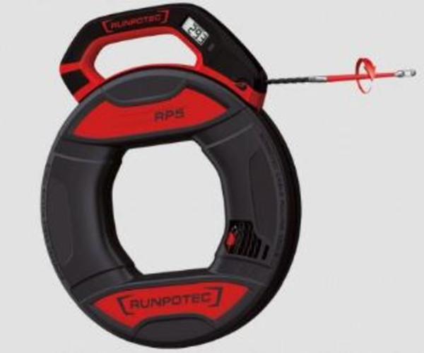 Die RP5 - RUNPOTEC Polyester Ø 5,5 mm ist ein Kabeleinziehwerkzeug inkl. digitalem Meterzähler (zur Längenermittlung von Rohren/Kabeln oder zur Erstellung von Kabellisten). Das dreifach verdrillte Spezialkunststoffband Ø 5,5 mm verfügt über eine noch bessere Schubwirkung als der Glasfaserstab Ø 3 mm und der Reibungswiderstand ist aufgrund seiner punktuellen Auflage nur halb so groß. Die patentierte RG7 - Führungsspitze mit Drallausgleich Ø 5,5 mm (am Bandanfang und -ende verpresst) ermöglicht das Überwinden engster Radien (Biegeradius 15 mm). Die RP5 - RUNPOTEC Polyester Ø 5,5 mm ist in einer baustellentauglichen und robusten Aufbewahrungsbox mit ergonomischem Tragegriff verstaut. Diese ist mit der neuen Rückschub-Sicherung ausgestattet, die das unabsichtliche Rückrutschen des Kabeleinziehbandes verhindert. Die Maßeinheit des Meterzählers kann von Metrisch (m) auf Imperial (ft) umgestellt werden. Die Gesamtbruchlast von unglaublichen 270 kg bezieht sich auf das gesamte Einziehsystem. Arbeits- und zeitaufwendige Reparaturarbeiten entfallen, da dieses Kabeleinziehsystem nahezu bruchfrei ist. Die RP5 ist in den Längen 20 m und 30 m erhältlich. Das RP5 Ersatzband 40 m kann nicht in der Box verstaut werden. Optimales Einsatzgebiet: für Rohre von Ø 16 mm - 40 mm.