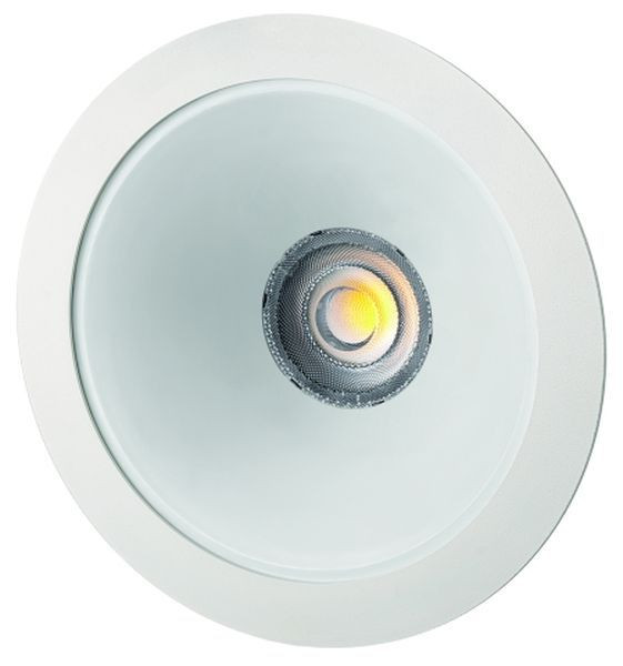 Sanierungsdownlight für die Innenanwendung, IP20 Frontring aus verzinkten Stahlblech pulverbeschichtet Modulträger aus verzinkten Stahlblech Passive Kühlung über den Reflektor Trompetenreflektor aus Reinstaluminium, pulverbeschichtet matt weiß Gehäusefarbe: RAL9010 Hochwertige Optik aus PMMA zur präzisen Lichtlenkung und sehr guter Entblendung Homogene symmetrische Ausleuchtung, UGR<19 Ausstrahlwinkel: 60° Leistung: 18 oder 24 W Lichtfarbe: 3000 K Lichtstrom: 2600 oder 3500 lm CRI: >80 Lebensdauer L70B50: >= 60.000 h Lebensdauer L80B10: >= 50.000 h Eingangsspannung: 220-240 V AC, 50/60 Hz, 180-280 V DC Schutzklasse II Einbautiefe: 80 mm Deckenausschnitt: 200-225 mm Außendurchmesser: 237 mm Werkzeugloser Einbau in die Decke mit Spannfedern, die sich an die Deckenstärke (1 - 30 mm) anpassen Einbau in Betoneingießtöpfe möglich Einwurf-Betriebsgerät mit Leuchtenkabel vormontiert für leichten Einbau Durchgangsverdrahtungstauglich Dimmbar über DALI-2 oder Push-Dim dieses Produkt enthält eine Lichtquelle der Energi