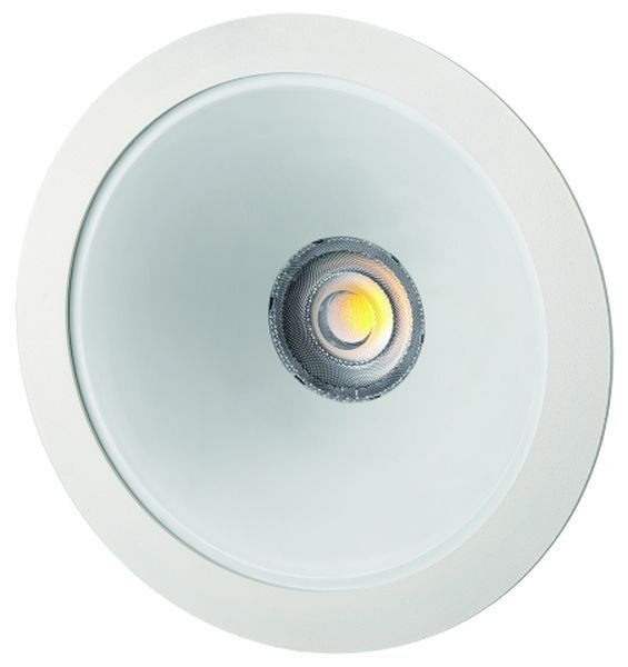 Downlight für die Innenanwendung, IP20 Frontring aus verzinkten Stahlblech pulverbeschichtet Modulträger aus verzinkten Stahlblech Trompetenreflektor aus Reinstaluminium, pulverbeschichtet matt weiß Gehäusefarbe: RAL9010 Hochwertige Optik aus PMMA zur präzisen Lichtlenkung und sehr guter Entblendung Homogene symmetrische Ausleuchtung, UGR<19 Ausstrahlwinkel: 60° Leistung: 7, 9 oder 14 W Lichtfarbe: 3000 K Lichtstrom: 1000, 1300 oder 2000 lm CRI: >80 Lebensdauer L70B50: >= 60.000 h Lebensdauer L80B10: >= 50.000 h Eingangsspannung: 220-240 V AC, 50/60 Hz, 170-276 V DC Schutzklasse II Einbautiefe: 80 mm Deckenausschnitt: 230-255 mm Außendurchmesser: 270 mm Werkzeugloser Einbau in die Decke mit Spannfedern, die sich an die Deckenstärke (1 - 30 mm) anpassen Einbau in Betoneingießtöpfe möglich Einwurf-Betriebsgerät On/Off mit Leuchtenkabel vormontiert für leichten Einbau Durchgangsverdrahtungstauglich dieses Produkt enthält eine Lichtquelle der Energieeffizienzklasse D