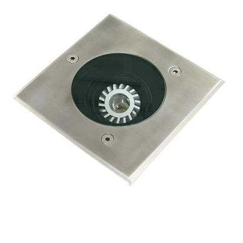 Bodeneinbaustrahler IP 67 Durchmesser: 149mm Einbaudurchmesser ohne Dose: 135mm Einbaudurchmesser mit Dose: 140mm Einbautiefe: 200mm Gehäuse aus Aluminium Druckguss, beschichtet mit korrosionsbeständiger Polyester Pulverbeschichtung Blende aus korrosionsbeständigem V4A-Edelstahl Nr. 1,4401, X 5 CrNiMo 17-12-2, ASTM Nr. 316 gehärtetes Sicherheitsglas, Stärke 10 mm Leuchtmittel justierbar 30° (10W Version nicht justiebar) für symmetrische und asymmetrische Lichtverteilung Kabelverschraubung M16 Anschlussleitung 3 x 1,5 mm2, L 1 m (Nur 10W Version) inklusive Kunststoffeinbaudose Schutzart IP67 überrollbar bis 2 Tonnen exklusive Leuchtmittel