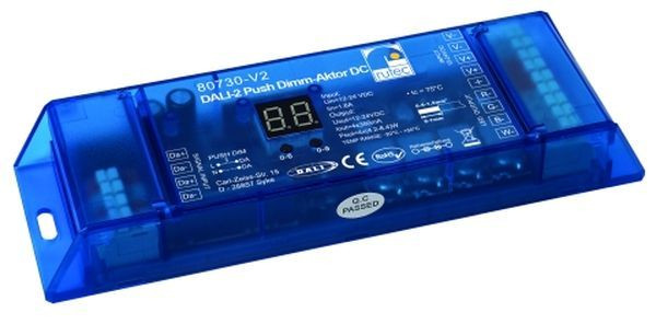 4 Adressen - 4 Kanäle, mehrfarbig, Konstantstrom LED Dimmer für digitales dimmen mit weichen Regelverhalten 4 Adressen / unabhängige Kanäle 350 mA Schaltleistung pro Ausgang 4,2W (12V), 8,4W (24V) DALI Adresse manuell einstellbar und sichtbar per Digitalanzeige. Automatisch adressierbar vom Master-Controller. Gemäß DALI standard Protokoll IEC62386 geeignet für marktübliche DALI Geräte Device Type: DT6 für die Innenanwendung IP20 Dimmbereich: 0-100% Push Dim Schutzklasse 3, CE, RoHS, REACH Schutz gegen Kurzschluss und Übertemperatur