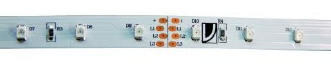 Flexible LED Leiste mit Lauflichtfunktion, selbstklebende Rückseite, für die Innenanwendung mit selbstklebender Rückseite für die Innenanwendung verschiedene Lichtsteuerungen mit Standard RGB Controller alle 16,4 cm oder 9 LEDs teilbar LED Abstand: 18 mm leichte lötfreie Montage durch Steckverbindungen maximale Länge pro Anschluss: 10 Meter. Für größere Längen neu einspeisen Lieferumfang: 5 Meter-Rolle, 5 Einspeisungsverbinder, 1 Direktverbinder