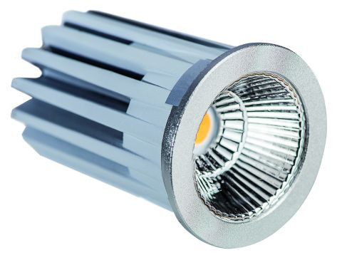LED-Modul 5,5W mit Reflektor dimmbar Lichtfarbe:3000K Lebensdauer L70B50: >= 50.000 h für den Betrieb an Konstantstrom Vorschaltgeräten 600 mA Sehr gute Wärmeableitung durch optimierten Aluminium-Kühlkörper Aluminiumreflektor mit Halogenoptik und gleichmäßiger Lichtverteilung, Ausstrahlwinkel 40° Energieeffizienzklasse: E