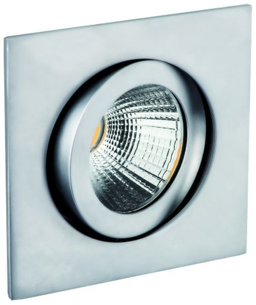 für die Innenanwendung, IP 20 Gehäuse: Aluminium-Druckguss, Glasreflektor, Schutzglas Gehäusefarbe: chrom matt 30° schwenkbar Ausstrahlwinkel: 25° Leistung: 8 W Lichtfarbe: 2700 K Lichtstrom: 670 lm CRI: >90 Lebensdauer L70: >= 33.000 h Betriebsstrom: 350 mA DC Schutzklasse III, MM Einbautiefe: 40 mm Deckenausschnitt: 68 mm Außenmaße: 82 x 82 mm inklusive Konstantstrom-Konverter, dimmbar Phasenabschnitt