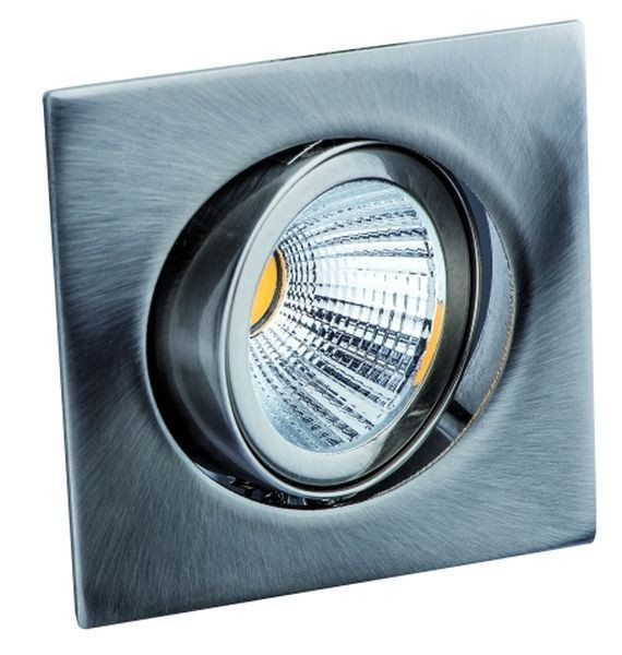 für die Innenanwendung, IP 20 Gehäuse: Aluminium-Druckguss, Glasreflektor Gehäusefarbe: eisen gebürstet 30° schwenkbar Ausstrahlwinkel: 25° Leistung: 8 W Lichtfarbe: 2700 K Lichtstrom: 900 lm CRI: >80 Lebensdauer L70B50: >= 50.000 h Betriebsstrom: 350 mA DC Schutzklasse III, MM Einbautiefe: 35 mm Deckenausschnitt: 68 mm Außenmaße: 82 x 82 mm inklusive Konstantstrom-Konverter dieses Produkt enthält eine Lichtquelle der Energieeffizienzklasse E