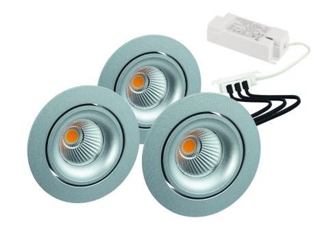 | Kurzbeschreibung | schw,rund,300mA,3x6W,IP40,3000K,CRI80-silber GAIL LED-Einbaustrahler3er Set on-off plug&play |