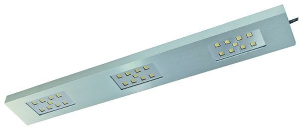 Artikel-Nr. LED53503S Lara 3S 27 SMD LEDs, Gesamtleistung 7,5 W Aluminium-Druckguss LED Möbelaufbaustrahler ultraflach, Höhe 15 mm Eingangsspannung 12 V DC Abstrahlwinkel 120° inkl. 2 m Anschlusskabel und TOP Stecker