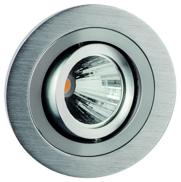 für die Innenanwendung, IP 20 Gehäuse: Aluminium-Druckguss, Aluminiumreflektor, mit Schutzglas Gehäusefarbe: alu gebürstet schwenkbar Ausstrahlwinkel: 27° Leistung: 3,7 W Lichtfarbe: 3000 K Lichtstrom: 350 lm CRI: >80 Lebensdauer L70B50: >= 50.000 h Betriebsstrom: 350 mA DC Schutzklasse III Einbautiefe: 45 mm Deckenausschnitt: 60 mm Außendurchmesser: 70 mm Energieeffizienzklasse: F exklusive Konstantstrom-Konverter