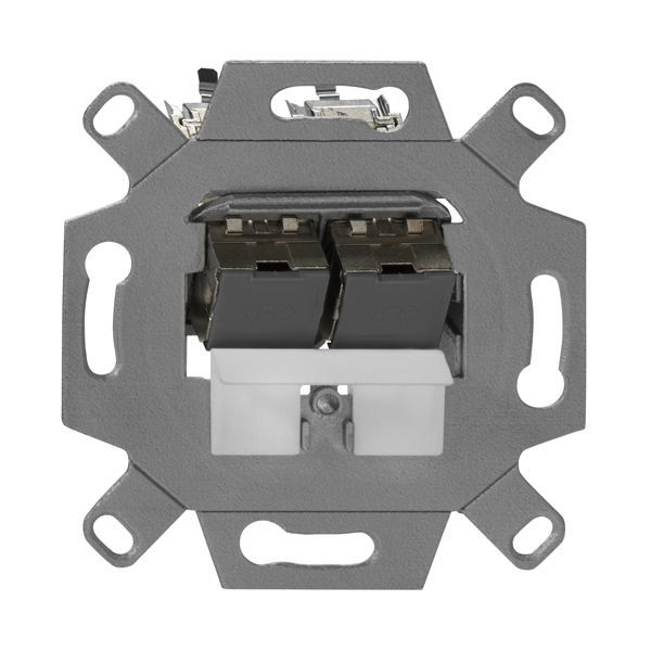 10 Gigabit-Modularanschlussdose, geschirmt, 2-fach, Unterputz, mit 2 Modulen, abbrechbarer Tragring für Stegversion, für Abdeckungen der Elektro-Installationsmaterial-Hersteller; - für den Einsatz in 10-Gigabit-Ethernet-Netzwerken (Übertragungsbandbreite bis 500 MHz); - RJ45-Stecköffnungen; - passend zu TAE-Designabdeckungen der Schalterindustrie (Berker, Busch-Jaeger, GIRA, Jung, Merten usw.); Eigenschaften Modul:; - 10GB-Universalmodul, geschirmt; - für den Einsatz in 10-Gigabit-Ethernet-Netzwerken (Übertragungsbandbreite bis 500 MHz); - 1 x RJ45-Stecköffnung; - passend in Standard-Keystone-Öffnungen (14,8 x 19,3 mm); - Zinkdruckgussausführung; - vernickelte Gehäuseoberfläche; - 360° Zugentlastung und Schirmung; - für Datenkabel mit 6-10 mm Durchmesser; - massive Leiter: IDC-Klemmen für einen Leiter 0,51 - 0,64 mm Ø, AWG 24-22, Außendurchmesser 0,7-1,6 mm (PE); - flexible Leiter: IDC-Klemmen für einen Leiter 0,13-0,22 mm Ø, AWG 26 (PE-Foamskin), AWG 24 (PE-solid), Außendurchmesser 0,9-1,1 mm (PE); - 1 Ader je Kontakt, Wiederbelegbarkeit 10-mal (bei gleichem oder größerem Querschnitt); - biegeradienoptimierte Zuführung der Anschlusskabel (30°); - definierter Erdanschluss mittels handelsüblicher Flachsteckverbinder möglich; - Montage ohne Spezialzangen/-werkzeuge; - integrierte Staubschutzkappe (bei Bedarf entfernbar/austauschbar); - Farbcode T568A und T568B gemäß TIA/EIA-568-B.2; - geeignet für PoE++ / 4PPoE gemäß IEEE 802.3bt; - UPOE-konform; - HDBaseT-konform; - mit Montageadapter schräg/gerade passend zu TAE-Designabdeckungen der Schalterindustrie (Berker, Busch-Jaeger, GIRA, Jung, Merten usw.); - entsprechend nachfolgender Normanforderungen:; - ISO/IEC 11801, Cat.6A, geschirmt; - DIN EN 50173-1, Cat.6A, geschirmt; - ANSI TIA/EIA-568-C.2 Category 6A; - DIN EN 60603-7-51, 500 MHz, geschirmt; - Lebensdauer > 750 Steckzyklen; - RJ11/12 fehlstecksicher; - GHMT gegenzertifiziert