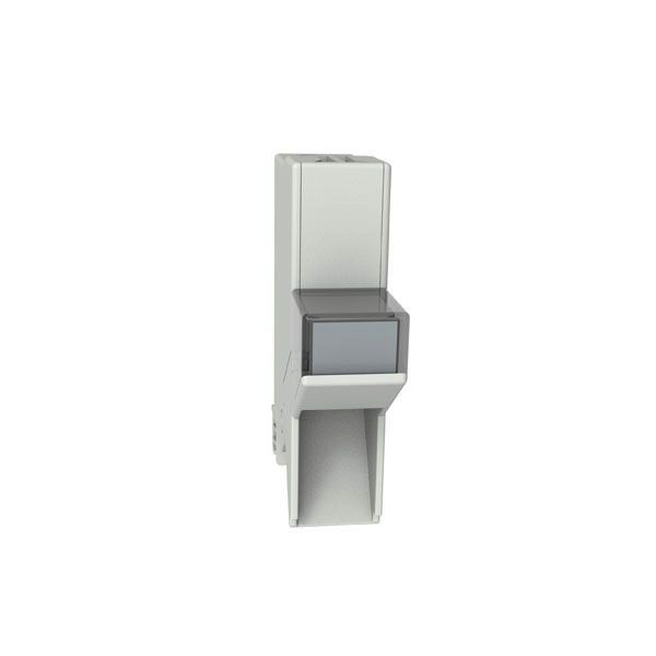 Montageadapter, 1-fach, REG-Montage, zur Befestigung eines Universalmoduls UM-Cat.6A iso 25/10G oder UM-Cat.6A iso 40/10G auf einer DIN-Normschiene, lichtgrau (ähnlich RAL 7035); - zur Aufnahme von einem Universalmodul UM-Cat.6A iso 25/10G oder UM-Cat.6A iso 40/10G; - Isolationsklasse II (ohne Erdanschluss); - Isolationsklasse I (mit Erdanschluss); - für handelsübliche DIN-Schienenmontage (18 mm); - definierter Erdanschluss am Modul mittels handelsüblicher Flachsteckverbinder möglich; - RJ45-Schrägauslass (ca. 45°); - individuell beschriftbar mittels Beschriftungsträger