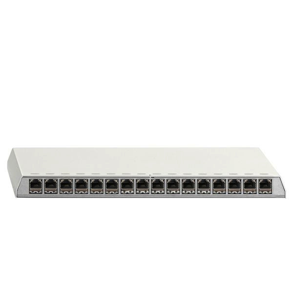 10 Gigabit-Patchpanel, geschirmt, Aufputz, für Tisch-/Wandmontage, REG-Montage mit Hutschienenadapter 10010070, 16 RJ45 Steckbuchsen, reinweiß (ähnlich RAL 9010); - für den Einsatz in 10-Gigabit- Ethernet-Netzwerken (Übertragungsbandbreite 500 MHz); - DIN-Schienenmontage mit zusätzlichem Hutschienenadapter; - Schnellmontagedeckel durch Verrastung; - vollgeschirmtes Metallgehäuse; - RJ45-Steckbuchsen; - unverlierbare Zugentlastung und Schirmkontakte; - großflächige, radiale Schirmlager und Schirmkontakte; - schnelle Installation durch LSA-Kontakte; - Farbcode T568A und T568B gemäß TIA / EIA-568-B.2; - geeignet für Cat.6 und Cat.7 Kabel (Ø 6-10 mm); - UPOE-konform; - HDBaseT-konform; - LSA-Klemmen für einen Leiter 0,4-0,63 mm Ø, AW 26-22, Wiederbelegbarkeit > 50-mal; - geeignet für PoE++ / 4PPoE gemäß IEEE 802.3bt; - UPOE-konform; - HDBaseT-konform; - entsprechend nachfolgender Normanforderungen:; - ISO/IEC 11 801, Cat.6A, geschirmt; - DIN EN 50173-1, Cat.6A, geschirmt; - ANSI TIA/EIA-568-C.2, Category 6A; - DIN EN 60 603-7-51, 500 MHz, geschirmt; - Lebensdauer > 750 Steckzyklen; - RJ11/12 fehlstecksicher