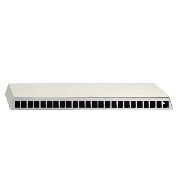 Cat.6A iso-Patchpanel mit 24 Universalmodulen UM-Cat.6A iso 10G, geschirmt, Aufputz, für Tisch-/Wandmontage, REG-Montage mit Hutschienenadapter 10010070, reinweiss (ähnlich RAL 9010); - Schnellmontagedeckel durch Verrastung; - vollgeschirmtes Metallgehäuse; - zusätzliche Zugentlastungsmöglichkeit für die Kabel mittels Kabelbinder; - für Tisch-/Wandmontage; - beschriftbar mit Zeichenträger 23510009; Eigenschaften Modul:; - Cat.6A iso Universalmodul, geschirmt; - für den Einsatz in 10-Gigabit-Ethernet-Netzwerken (Übertragungsbandbreite bis 500 MHz); - 1 x RJ45-Stecköffnung; - passend in Standard-Keystone-Öffnungen (14,8 x 19,3 mm); - Zinkdruckgussausführung; - vernickelte Gehäuseoberfläche; - 360° Zugentlastung und Schirmung; - für Datenkabel mit 6-10 mm Durchmesser; - massive Leiter: IDC-Klemmen für einen Leiter 0,51 - 0,64 mm Ø, AWG 24-22, Außendurchmesser 0,7-1,6 mm (PE); - flexible Leiter: IDC-Klemmen für einen Leiter 0,13-0,22 mm Ø, AWG 26 (PE-Foamskin), AWG 24 (PE-solid), Außendurchmesser 0,9-1,1 mm (PE); - 1 Ader je Kontakt, Wiederbelegbarkeit 10-mal (bei gleichem oder größerem Querschnitt); - biegeradienoptimierte Zuführung der Anschlusskabel (30°); - definierter Erdanschluss mittels handelsüblicher Flachsteckverbinder möglich; - Montage ohne Spezialzangen/-werkzeuge; - integrierte Staubschutzkappe (bei Bedarf entfernbar/austauschbar); - Farbcode T568A und T568B gemäß TIA/EIA-568-B.2; - geeignet für PoE++ / 4PPoE gemäß IEEE 802.3bt; - UPOE-konform; - HDBaseT-konform; - entsprechend nachfolgender Normanforderungen:; - ISO/IEC 11801, Cat.6A, geschirmt; - DIN EN 50173-1, Cat.6A, geschirmt; - ANSI TIA/EIA-568-C.2 Category 6A; - DIN EN 60603-7-51, 500 MHz, geschirmt; - Lebensdauer > 750 Steckzyklen; - RJ11/12 fehlstecksicher; - GHMT gegenzertifiziert