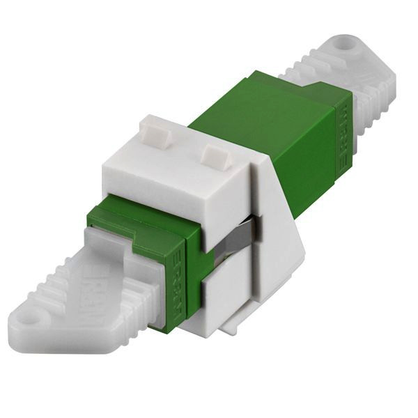 LSH Keystone Modul,SM, OS2 APC, (grün), reinweiß (ähnlich RAL 9010); - für Montageadapter KMK-MA Up rw/sw und andere Einbauadapter; - geschlitzte Keramikhülse; - mit Staubschutzkappen; - entsprechend nachfolgender Normanforderungen:; - ISO 61754-15; - SM APC, Grade B; - Lebensdauer > 1000 Steckzyklen