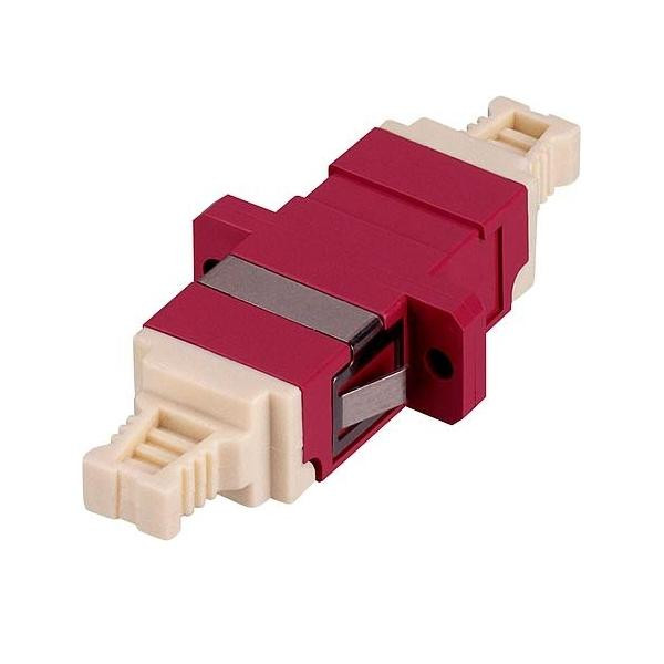 LC-D Kupplung, OM4, erika, Kunststoffgehäuse zur Schraub- oder Einschnappmontage (Metall-Clip), geschlitzte Keramikhülse, mit Staubschutzkappen, Entsprechend nachfolgender Normanforderungen: - ISO 61754-20, MM PC, Grade B, Lebensdauer > 1000 Steckzyklen