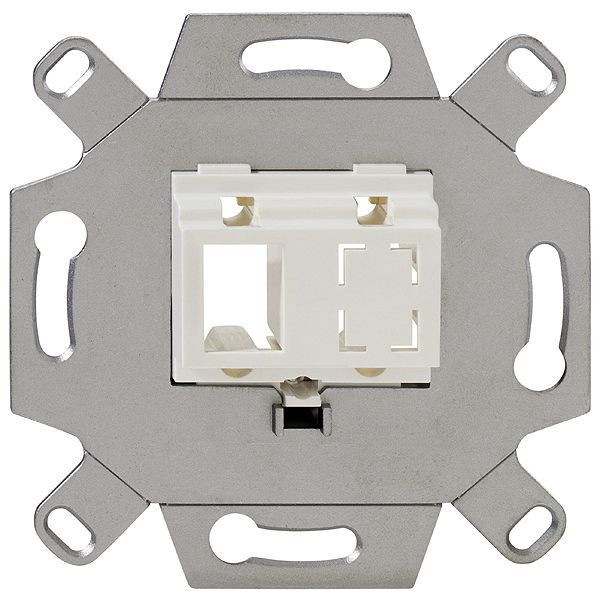 Montageadapter, LC-D/SC, 2-fach, reinweiß (ähnlich RAL 9010), für TAE-Abdeckungen; - Tragadapter aus Zinkdruckguss; - abbrechbarer Tragring für Stegversion; - metrische Schrauben für Zentralstücke; - Montage optimal in Verbindung mit Kaiser-Electronicdose (oder vergleichbar); - passend zu TAE-Designabdeckungen der Schalterindustrie (Berker, Busch-Jaeger, GIRA, Jung, Merten, usw.)