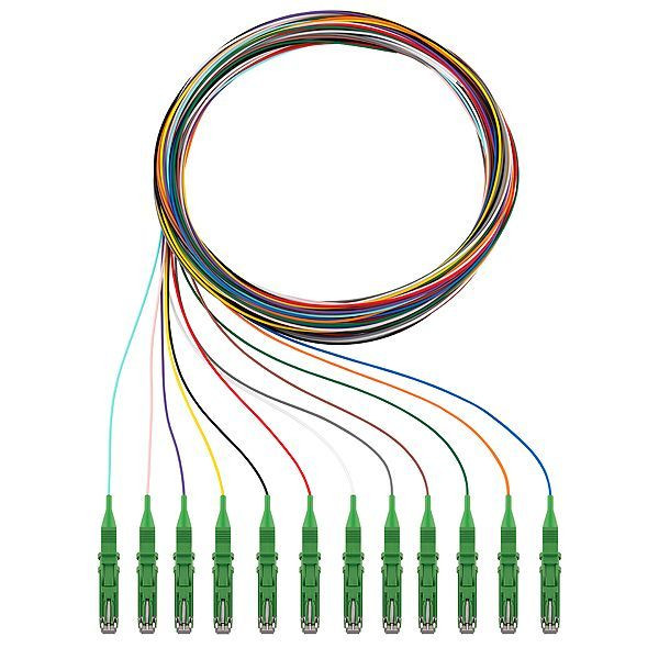 Pigtails, 12xLSH, APC, 2m; - SM-Faser, E9/125 µm, Grade B; - Farbfolge gem. IEC 60304; - LSH-Stecker einseitig montiert; - entsprechend nachfolgender Normanforderungen:; - ISO 61754-15; - mit Prüfprotokoll; - Länge 2 m