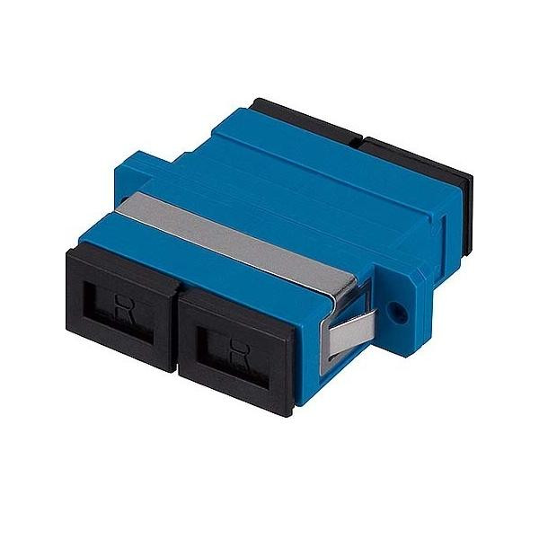 SC-D Kupplung, OS2, blau, Kunststoffgehäuse zur Schraub- oder Einschnappmontage (Metall-Clip), geschlitzte Keramikhülse, mit Staubschutzkappen, Entsprechend nachfolgender Normanforderungen: - ISO 61754-4, SM PC, Grade B, Lebensdauer > 1000 Steckzyklen