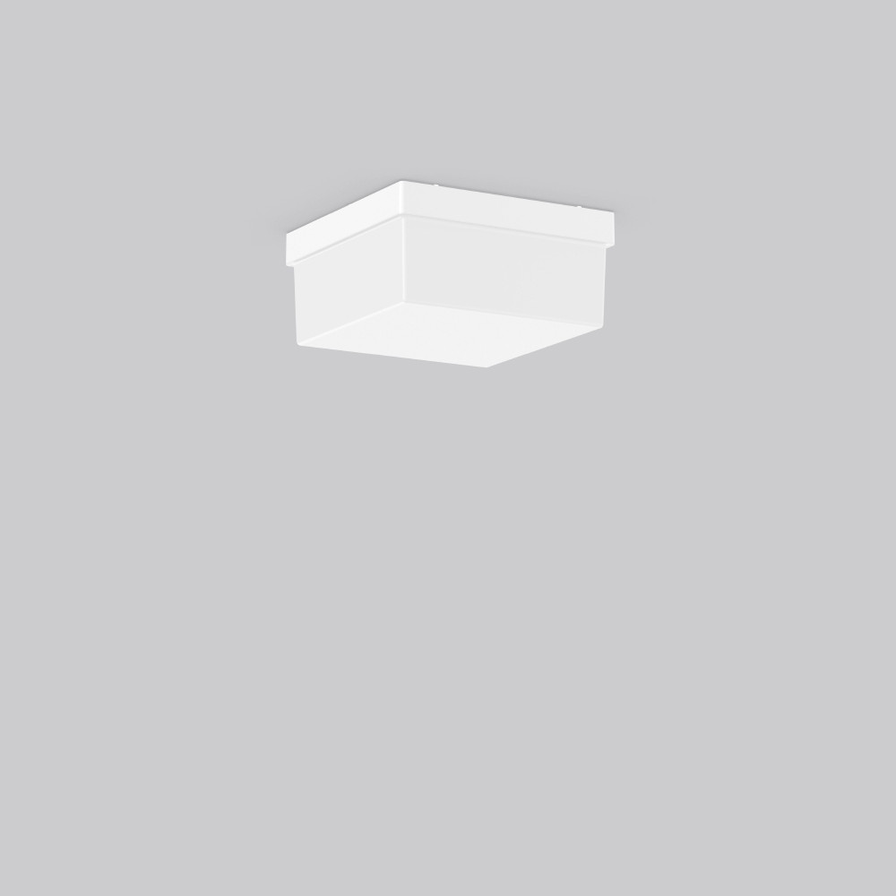 Quadratische Anbauleuchte im klassischen Design. Armatur Kunststoff. Diffusor Kunststoff (Polypropylen) opal seidenmatt. Befestigung des Diffusors mit Federsystem. Geeignet für Deckenanbau, Wandanbau. IP 43 Deckenmontage, IP 44 Wandmontage.