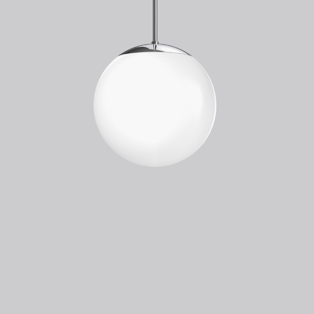 Pendelleuchte in zeitlos klassischem Kugeldesign. Armatur Metall verchromt. Baldachin Metall verchromt. Diffusor mundgeblasenes Opalglas seidenmatt. Schattenfreie, homogene und weiche Ausleuchtung. Inklusive Montageplatte mit Anschlussklemme und Befestigungsmaterial für Rohrpendel. Rohrpendel separat bestellen!