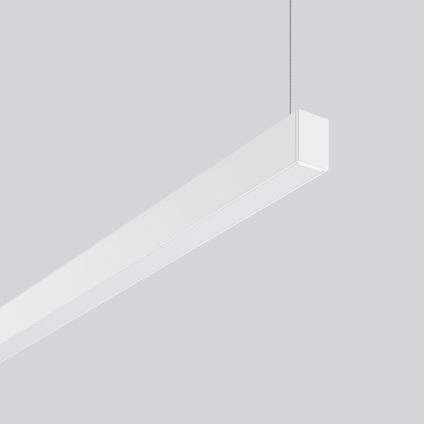 Pendelleuchte in minimalistischem Design. Gehäuse Aluminium-Strangpressprofil pulverbeschichtet. Endkappen Aluminium pulverbeschichtet. Diffusor aus vergilbungsfreiem Kunststoff (PMMA) opal. Lichtaustritt direkt 60%, indirekt 40%. Geeignet für Pendel. 2-Punkt Stahlseilabhängung stufenlos höhenverstellbar oder gewünschte Sonderlängen auf Anfrage. Betriebsgerät extern mit Verbindungsleitung.