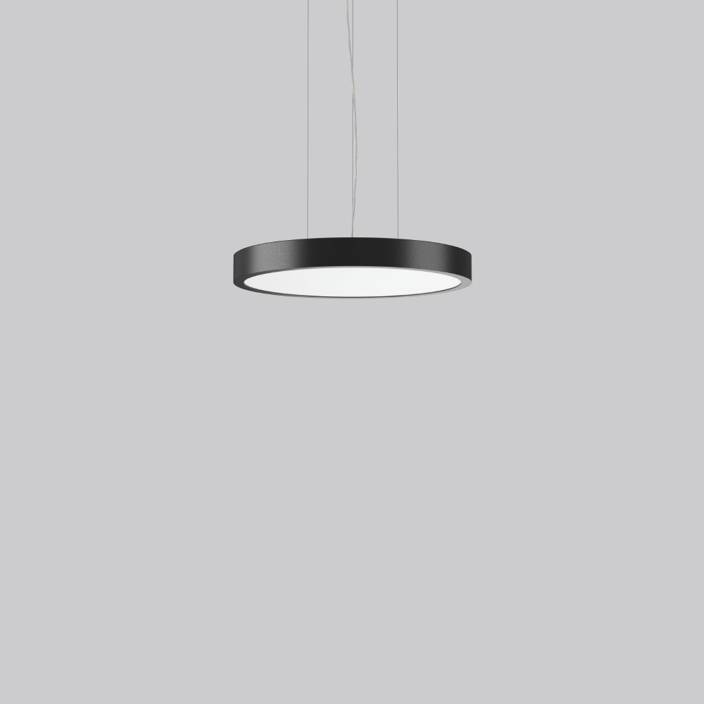 Dekorative runde LED Pendel-Flächenleuchte. Flacher nahtloser Rahmen Aluminium-Strangpressprofil pulverbeschichtet. Abdeckung Stahlblech pulverbeschichtet. Baldachin Aluminium pulverbeschichtet. Lichtaustritt über Diffusor Kunststoff opal. Diffusor und Lightguide aus vergilbungsfreiem Kunststoff (PMMA). Seitliche Lichteinkopplung (RZB SIDELITE-Technologie) für überdurchschnittlich homogene Leuchtdichteverteilung und randlose Ausleuchtung. Tunable White Versionen dynamisch einstellbar von 2700 K bis 6500 K. Für Human Centric Lighting (HCL) in Verbindung mit RZB-Lichtmanagementsystemen geeignet. 3-Punkt Stahlseilabhängung stufenlos höhenverstellbar. Einfache Montage mit transparenter, kürzbarer Pendelleitung und Baldachin mit Magnetbefestigung. Betriebsgerät integriert. Mit Casambi smart+free Bluetooth Steuerung zur drahtlosen Vernetzung und Bedienung mittels Android / iOS Gerät, kostenlose App zum Download verfügbar.