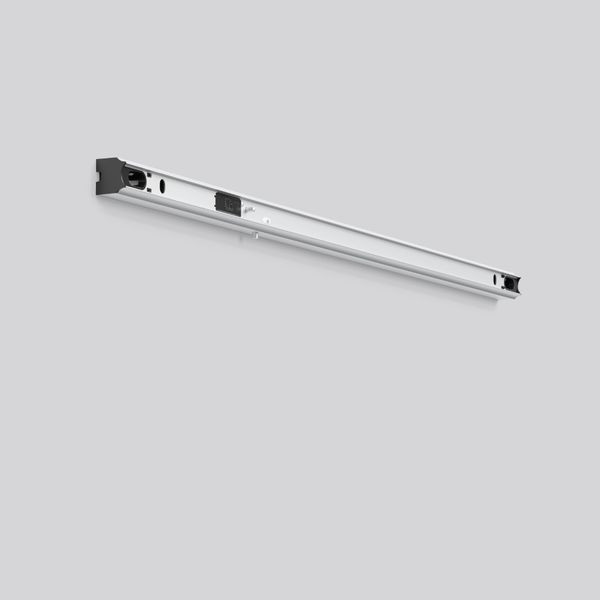 Armatur Aluminium, eloxiert, Endkappen Kunststoff, für Decken- oder Wandmontage. Spannungsfreischaltung der Lampenkontakte bei Lampenwechsel, mit Druckschalter