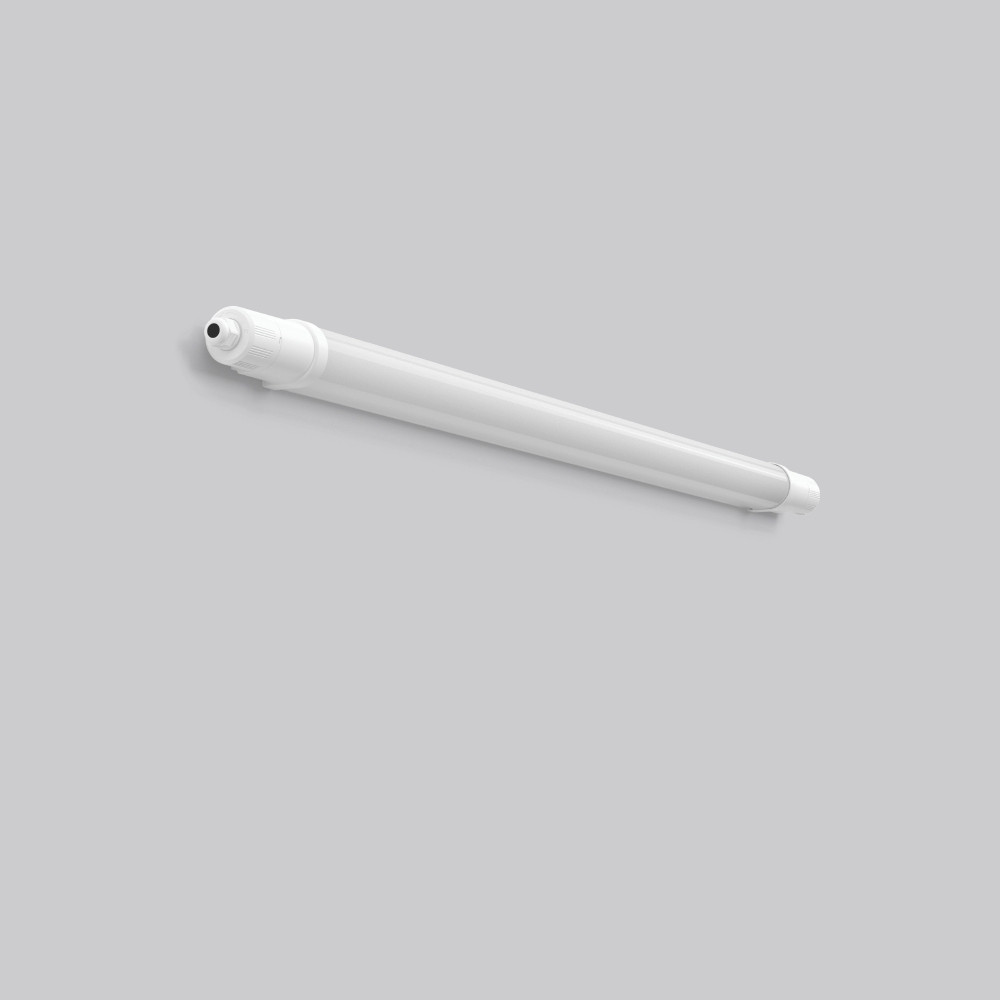 Feuchtraumanbauleuchte. Seitenteile Kunststoff (Polycarbonat) weiß. Diffusor Kunststoff (Polycarbonat) opal. Lichtverteilung symmetrisch. Homogene Ausleuchtung. Deckenmontagebügel aus Edelstahl und Triangel-Bügel für Pendelmontage im Lieferumfang enthalten. Betriebsgerät gekapselt, integriert und fest verbunden mit dem Diffusor und Seitenteil. Komfortable Leitungseinführung über Kabelverschraubungen. Einfache Installation durch Drehverschluss auf beiden Seiten. Leuchte mit integrierter 3-poliger Durchgangsverdrahtung für das Aneinanderreihen von weiteren Leuchten. MultiLumen: Einstellbarkeit des Leuchtenlichtstroms in 2 Stufen. Werkseitig auf höchsten Leuchtenlichtstrom voreingestellt. Leuchte mit begrenzter Oberflächentemperatur nach DIN EN 60598-2-24 zur Verwendung in einer Umgebung, in der eine Ablagerung von leitfähigem Staub auf der Leuchte erwartet werden kann.