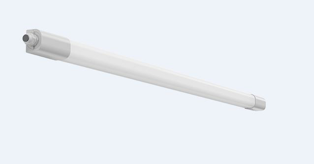 Feuchtraumleuchte mit schlanker und flacher Gehäuseform. Seitenteile Kunststoff (Polycarbonat) grau, schlagzäh. Diffusor aus Kunststoff (Polycarbonat) opal, schlagzäh. Diffusor extrudiert, innenprismatisch und UV-beständig. Lichtverteilung symmetrisch. Homogene Ausleuchtung. Rückwärtiger Lichtanteil zur Deckenaufhellung. Flexible Installation durch verschiebbare Montagebügel. Ideal bei Leuchtenaustausch. Deckenmontagebügel aus Edelstahl und Triangel-Bügel für Pendelmontage im Lieferumfang enthalten. Betriebsgerät gekapselt, integriert und fest verbunden mit dem Diffusor und Seitenteil. Leuchte mit integrierter Durchgangsverdrahtung für das Aneinanderreihen von weiteren Leuchten. Komfortable Leitungseinführung über Kabelverschraubungen. Einfache Installation durch Drehverschluss auf beiden Seiten. Leuchte mit begrenzter Oberflächentemperatur nach DIN EN 60598-2-24 zur Verwendung in einer Umgebung, in der eine Ablagerung von leitfähigem Staub auf der Leuchte erwartet werden kann. Zugelassen für den Einsatz in der Lebensmittel, und Getränkeindustrie.