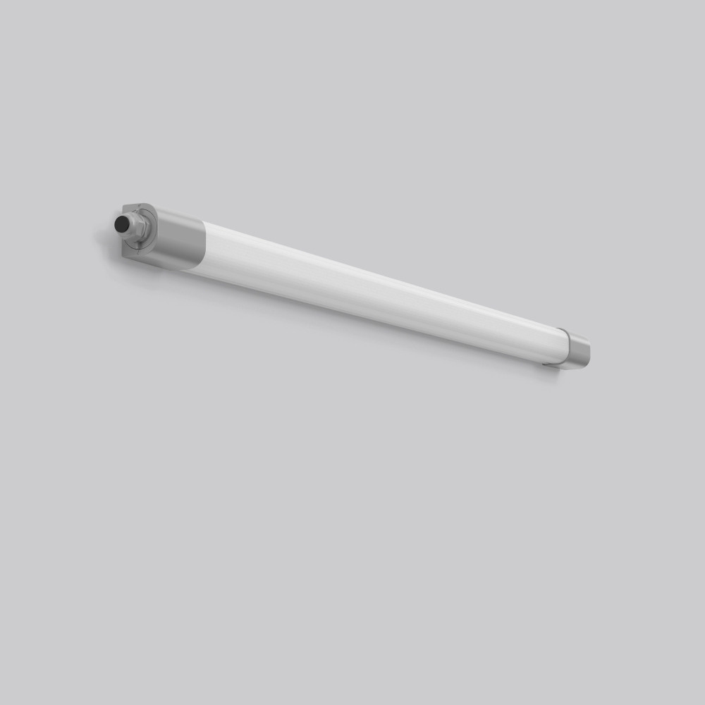 Ammoniakbeständige Feuchtraumleuchte. Seitenteile Kunststoff (PMMA) grau. Diffusor aus vergilbungsfreiem Kunststoff (PMMA) opal. Lichtverteilung symmetrisch. Homogene Ausleuchtung. Rückwärtiger Lichtanteil zur Deckenaufhellung. Flexible Installation durch verschiebbare Montagebügel. Ideal bei Leuchtenaustausch. Deckenmontagebügel aus Edelstahl und Triangel-Bügel für Pendelmontage im Lieferumfang enthalten. Leuchte mit integrierter 4-poliger Durchgangsverdrahtung für das Aneinanderreihen von weiteren Leuchten. Komfortable Leitungseinführung über Kabelverschraubungen. Einfache Installation durch herausnehmbare Steckverbindung und Drehverschluss auf beiden Seiten. Austauschbare und herausnehmbare LED-Einheit mit integriertem Betriebsgerät. MultiLumen: Einstellbarkeit des Leuchtenlichtstroms in 2 Stufen. Werkseitig auf höchsten Leuchtenlichtstrom voreingestellt. Leuchte mit begrenzter Oberflächentemperatur nach DIN EN 60598-2-24 zur Verwendung in einer Umgebung, in der eine Ablagerung von leitfähigem Staub auf der Leuchte erwartet werden kann. Ammoniakbeständig: Zur Verwendung in Ställen mit Nutztierhaltung und landwirtschaftlichen Nebenbereichen geeignet.