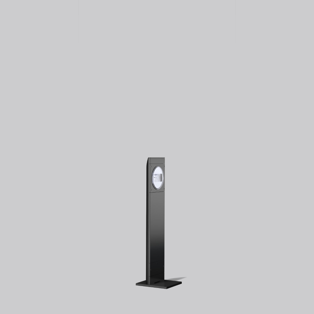 LED-Wegeleuchte im ausgezeichneten Design. Aufrechtes, gerades Standrohr aus Aluminium-Profil mit Moduleinsatz. Abdeckungen und Bodenplatte aus korrosionsbeständigem Aluminium-Druckguss für Außenanwendung, seewasserbeständig pulverbeschichtet. Serienmäßig mit Gore™ Protective Vents Membranventil zur Kondenswasservermeidung. Modul mit integrierter LED Refraktor-Optik und klarer ESG-Abdeckung. Lichtverteilung asymmetrisch. Betriebsgerät integriert. Netzanschluss an Kabelübergangskasten im Gehäuseprofil max. 2 x 3 x 2,5 mm². Kabeldurchmesser max. d 13 mm.