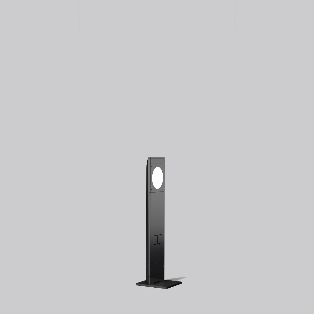 LED-Wegeleuchte im ausgezeichneten Design. Aufrechtes, gerades Standrohr aus Aluminium-Profil mit Moduleinsatz. Abdeckungen und Bodenplatte aus korrosionsbeständigem Aluminium-Druckguss für Außenanwendung, seewasserbeständig pulverbeschichtet. Serienmäßig mit Gore™ Protective Vents Membranventil zur Kondenswasservermeidung. Modul mit LED und Abdeckung Glas opal. Lichtverteilung symmetrisch. Betriebsgerät integriert. Netzanschluss an Kabelübergangskasten im Gehäuseprofil max. 2 x 5 x 1,5 mm². Kabeldurchmesser max. d 13 mm. 2 Schutzkontakt-Steckdosen mit Klappdeckel (IP 44) im Standrohr integriert.