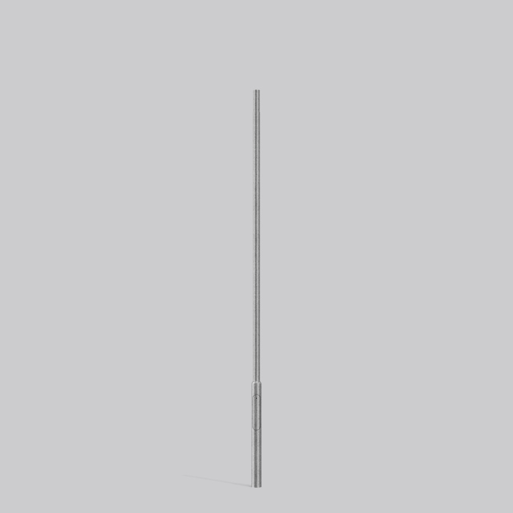 Zylindrisch abgesetzter Lichtmast aus Stahl nach DIN EN 40. Feuerverzinkt nach DIN EN ISO 1461. Wandstärke 3 mm. Bündige Masttür, 85 x 400 mm. Türverschluss VA Dreikant, 10 mm Kantenlänge, M10 (andere Verschlüsse auf Anfrage). Gerätesteg mit zwei Schiebemuttern M6 und Erdungsgewinde M8. Kabelloch 50 x 150 mm (UKK 500 mm unter Erde)