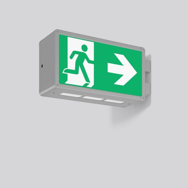 Rechteckige Wandauslegerleuchte im klassischen Design. Zur Rettungswegkennzeichnung. Gehäuse Aluminium mit Eckverbindungen Kunststoff. Kunststoffscheiben opal mit Rettungszeichen einseitig/zweiseitig. Wandbefestigungsbügel für stirnseitige Montage Betriebsgerät integriert. Zum Anschluss an zentrale Sicherheitsstromversorgung geeignet.